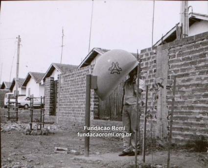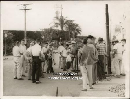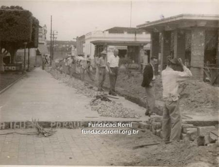 Instalação de cabos telefônicos da empresa Tebasa na Praça Coronel Luiz Alves. Década de 1960. Acervo: CEDOC Fundação Romi.