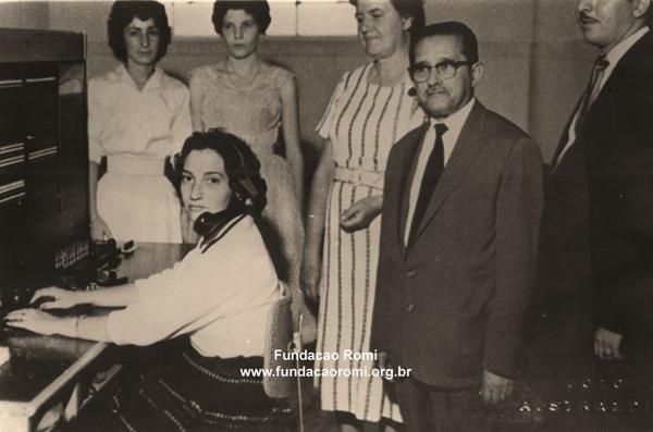 Manuel Teixeira, Leonel Duarte, Hilda; a telefonista Sonia; a chefe das telefonistas, Maria Sacchetto e a telefonista Deolinda Varela. 17/12/1960. Acervo: CEDOC Fundação Romi.
