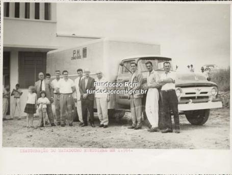 Prefeito Ângelo Giubbina e senhores em frente ao Matadouro Municipal. 1964