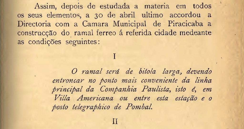 Aprovado o contrato entre a Companhia Paulista de Estradas de Ferro e a Câmara Municipal de Piracicaba para a construção de um ramal férreo, passando por Santa Bárbara e terminando em Piracicaba.