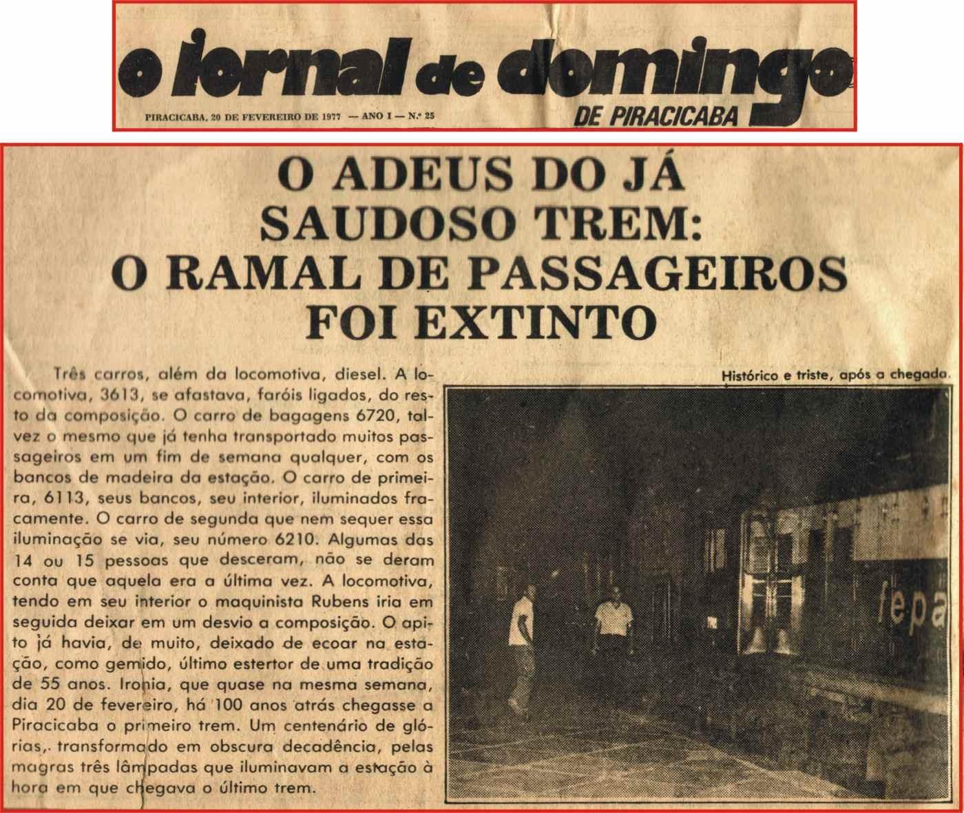 Em 20 de fevereiro de 1977, aconteceu a última viagem de passageiros e a ferrovia passou a ser utilizada apenas para transporte de cargas.