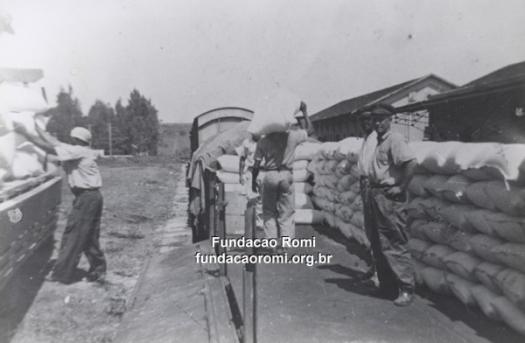 - Carregamento de açúcar na Estação Ferroviária de Santa Bárbara. Década de 1940. Acervo CEDOC Fundação Romi.