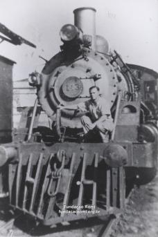 - Benedito Sales em uma Maria Fumaça em frente a Estação de Santa Bárbara.1943. Acervo CEDOC Fundação Romi.