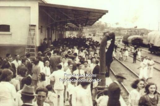 - Senhoras e senhores na gare da Estação Ferroviária a espera do expedicionário Adolfo Carneiro. 05/08/1945. Acervo CEDOC Fundação Romi.